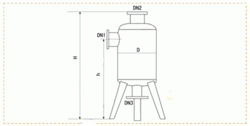 | 型 號 | 處理水量 | 進水壓力 | 平均除砂率 | 外型尺寸mm | 進水口DN1 | 出水口DN2 | 排污口DN3 | ||